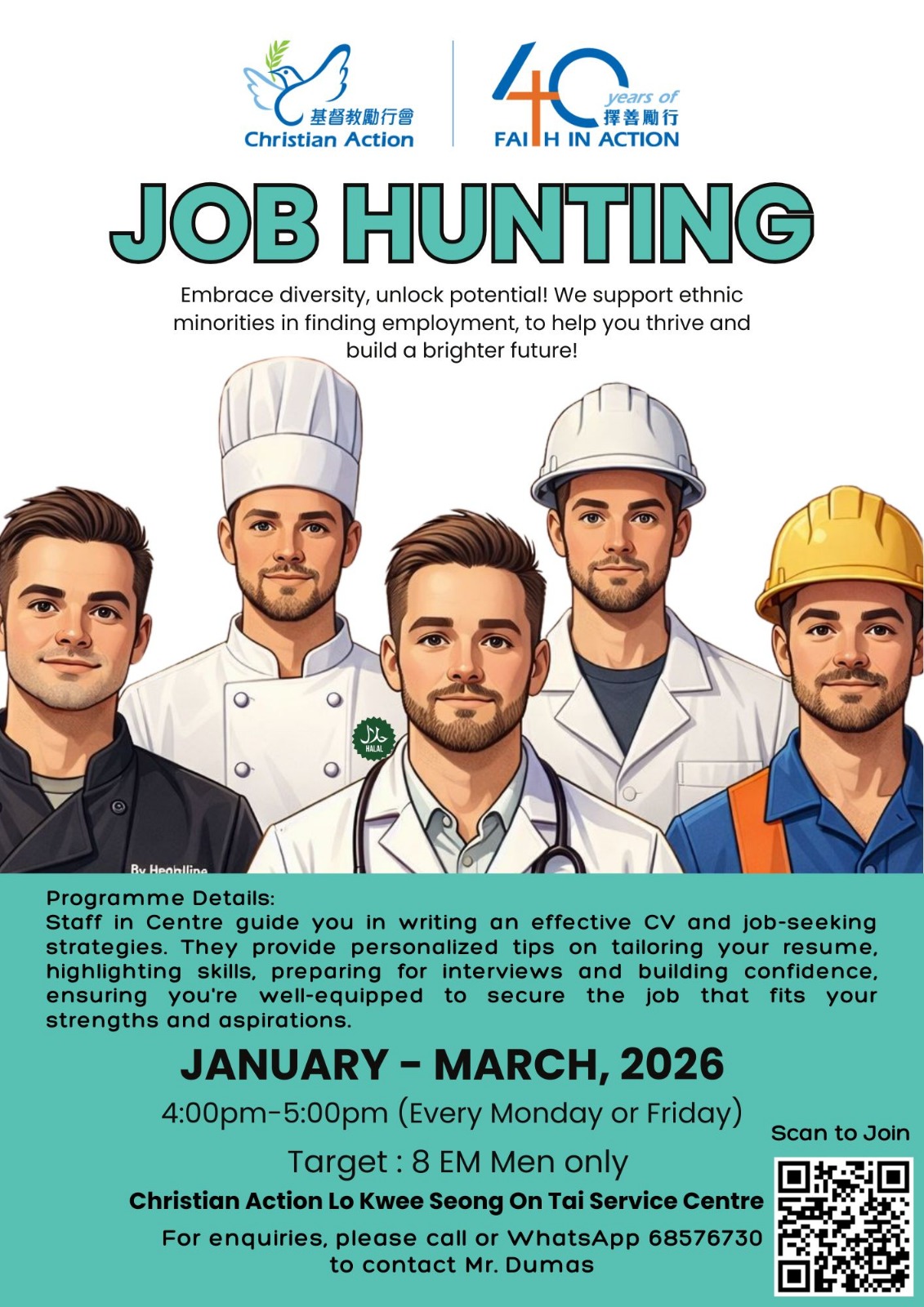 Our On Tai Service Centre (OTSC) will conduct a series of activities on acquiring enrichment skills and job interviewing techniques for some Ethnic Minorities (EM) men. Pray that the beneficiaries would be synergized to feel embraced and cared for; and regain their courage to seek long-term employment soon. Amen!